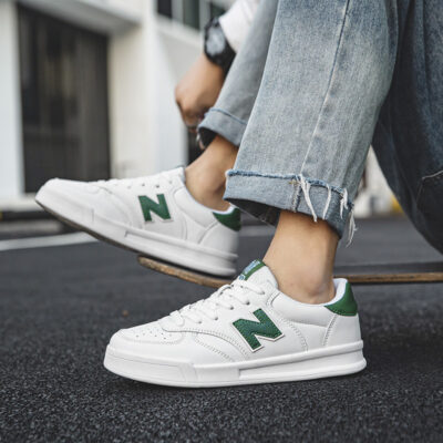 Giày thể thao nam màu trắng phong cách Hàn Quốc Giày chạy bộ bằng da thông thường dành cho nam Giày hợp thời trang phù hợp với tất cả các sinh viên Giày nam bán buôn