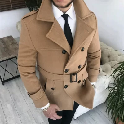 Nam Thu Đông Đôi Áo Liền Quần Len Nam Chất Lượng Cao Laple Thắt Lưng Chắc Chắn Dày Áo Khoác Dài Xu Hướng Nhân Quả Áo Khoác Ngoài