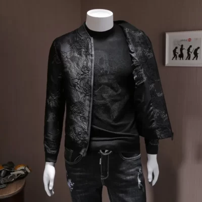 Thời Trang Nam Thu Đông Thêu Hoa Áo Khoác Bomber Slim Fit Cổ Đứng Áo Khoác Ngoài Áo Khoác Plus Kích Thước 5XL Dạo Phố Áo
