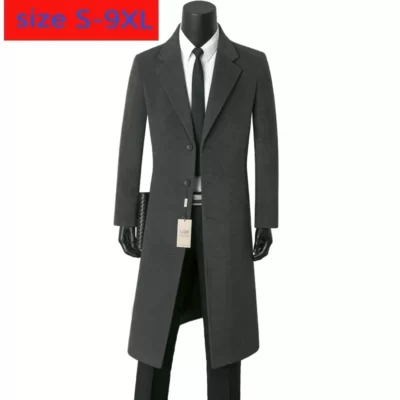 M-5XL Plus Kích Thước Nam Phong Cách Hàn Quốc Tweed Phối Đầu Gối Dài Thu Đông Dạo Phố Pha Len Hào Peacoat Thời Trang XXXXXL