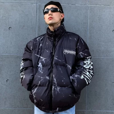 Mùa Đông Nam Quá Khổ Dạo Phố Parkas Thời Trang In Hình Gấu Bông Tai Kẹp Dày Ấm Quần Baggy Bông Lót Nam Nóc Áo Khoác