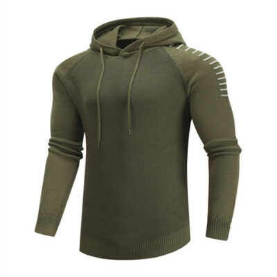 xuất khẩu ngoại thương nam mùa thu đông áo len mỏng vừa vặn có mũ trùm đầu màu trơn áo len thể thao Âu Mỹ