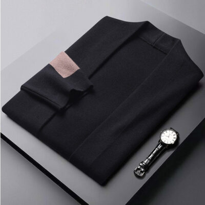 Xuyên Biên Giới 2023 Mới Cardigan Nam Thu Đông Dây Kéo Áo Khoác Bánh Waffle Dài Tay Ve Áo Đồng Màu Hàng Đầu