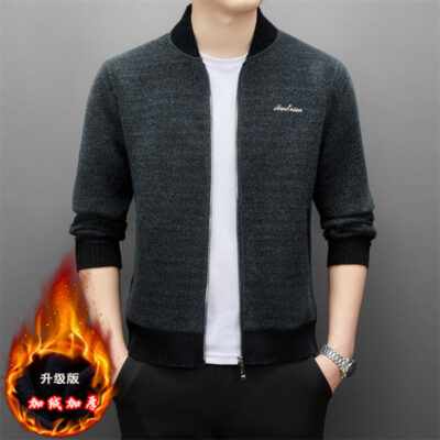 Xuyên biên giới 2022 mùa thu đông mới cổ áo bóng chày áo len dệt kim lông cừu nam phiên bản Hàn Quốc thoải mái áo len có khóa kéo bên ngoài