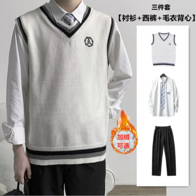 Áo dệt kim dk đồng phục áo len nam mùa đông vest nam học sinh jk áo len áo len không tay áo sơ mi hai bộ