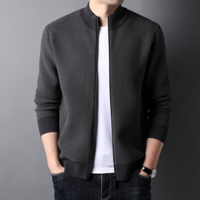 Áo Cardigan Dệt Kim Nam Mùa Thu Cổ Đứng Dày Có Khóa Kéo Dành Cho Người Trung Niên Và Trẻ Trung Màu Trơn Áo Len Mùa Thu Áo Khoác Hợp Thời Trang