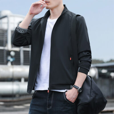 Áo Khoác Áo Khoác Nam Đơn Giản Giày Lười Áo Khoác Đen Thanh Niên Trung Niên Mỏng Phần Kinh Doanh Cổ Bóng Chày Nam Áo Khoác Ngoài