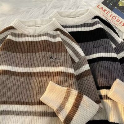 Áo dệt kim cặp đôi sọc phong cách cổ điển Nhật Bản dành cho nam và nữ thương hiệu hợp thời trang áo chui đầu dáng rộng phong cách lười biếng đẹp trai áo len dáng rộng phù hợp với mọi lứa tuổi