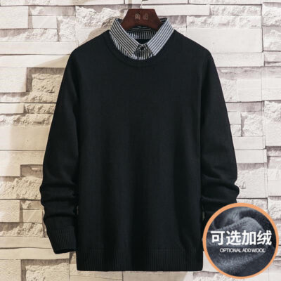 Áo hai mảnh giả mùa thu phong cách Hàn Quốc hợp thời trang nam áo len cổ sơ mi mùa thu đông tất cả các trận đấu dưới đáy hàng dệt kim lót cá tính