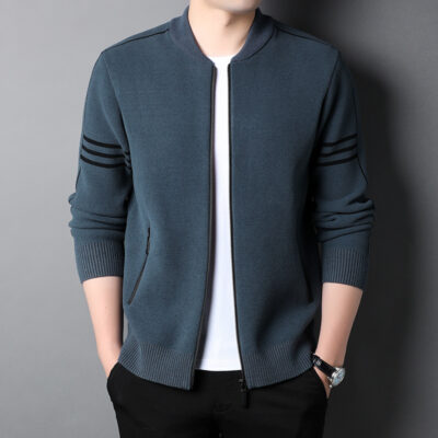 Áo Dệt Kim Nam Rời Cardigan Cổ Đứng Thể Thao Jacquard Thanh Niên Dài Tay Giản Dị Nhà Sản Xuất Cung Cấp Trực Tiếp