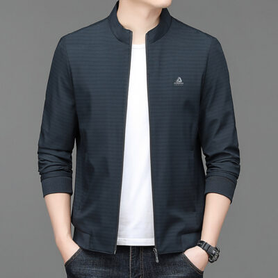 Áo hai dây chống nhăn áo khoác nam 2023 mới cổ đứng áo khoác nam xuân thu giản dị trẻ trung cao cấp
