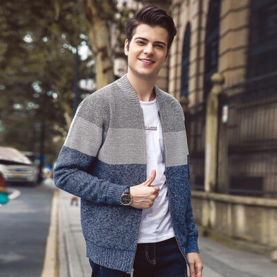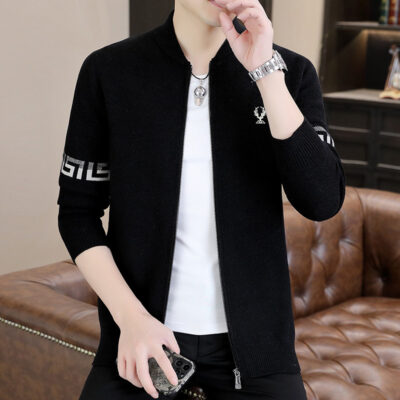 19 mùa thu đông mới áo len nam dáng rộng phiên bản Hàn Quốc cộng với áo len lông cừu cổ bóng chày áo len dài tay áo khoác cardigan nam
