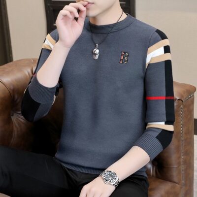 [Sản phẩm mới] Áo len dệt kim nam thu đông 2022 không đủ khả năng mặc áo sơ mi thể thao cổ tròn giản dị có đáy phong cách xu hướng