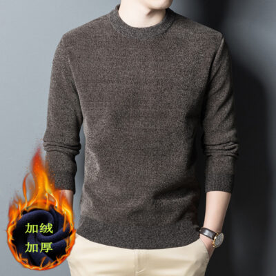 2021 Mới Viền Áo Len Nam Cổ Tròn Màu Áo Thun Nam Trung Niên Thu Đông Dày Dệt Kim Đáy Áo Sơ Mi