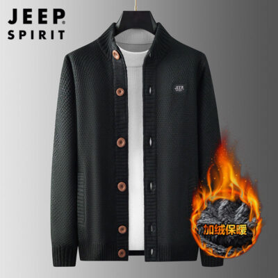 2021 Mùa Thu Đông Mới Cổ Đứng Nam Áo Len Dệt Kim Dày Plus nhung Bóng Chày Cardigan Nam Thời Trang Áo Khoác Bán Buôn