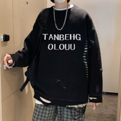 2021 Mới Nam Phong Cách Hồng Kông Sọc Rời Áo Len Cổ Tròn Phong Cách Hàn Quốc Áo Dệt Kim Dài Tay Áo Chui Đầu Triều Tiên