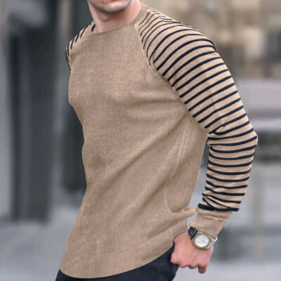 2022 Amazon Âu Mỹ Nam Dệt Kim Mùa Thu In Thể Thao Dài Tay Bánh Waffle Cổ Tròn Chui Đầu