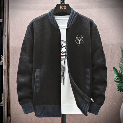 2021 Mới Mùa Thu Đông Nam Dệt Kim Cardigan Dài Tay Plus Nhung Dày Cổ Đứng Dạ Nỉ Nam Áo Bóng Chày Bán Buôn