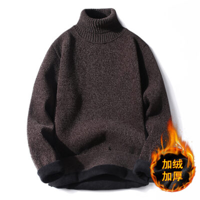 2021 Nam Lông Cừu Dày Đáy Áo Sơ Mi Ấm Áp Áo Len Cao Cổ Phong Cách Hàn Quốc Mùa Đông Áo Len Tay Dài