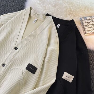 2022 Đầu Thu Mới Áo Len Cardigan Dệt Kim Nam Dài Tay Xuân Thu Phong Cách Hàn Quốc Mỏng Phối Màu Retro Áo Len Có Ve Áo