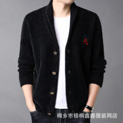 2021 Mới Thời Trang Nam Bóng Chày Cổ Giả Chồn Đan Cardigan Xu Hướng Thời Trang Áo Len Dạ Nỉ Một Dropshipping