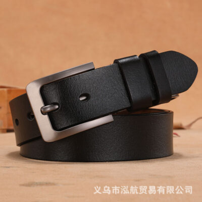 Cung cấp xuyên biên giới bán chạy nhất da thật nam kéo dài phong cách toàn màu đen kim rộng mở rộng thắt lưng nhà sản xuất thắt lưng da bò nguyên chất bán buôn