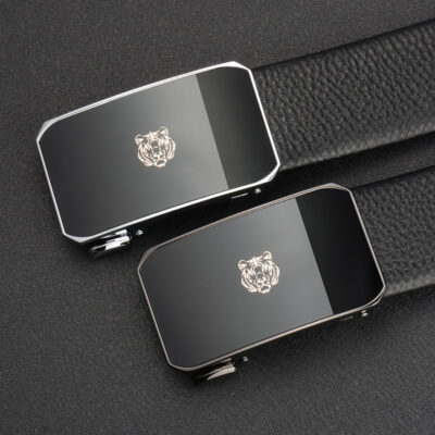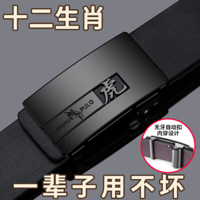 Thắt lưng da nam chính hãng năm con hổ thắt lưng tự động khóa bên trong mặc quần thắt lưng logo đầu hổ hoa văn vải viền thắt lưng