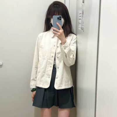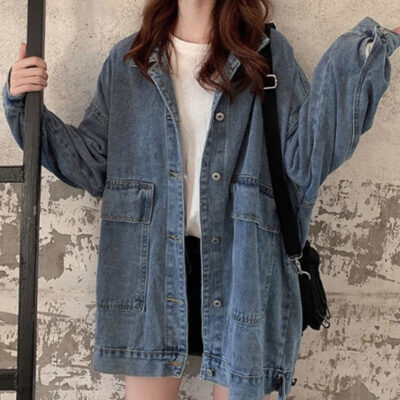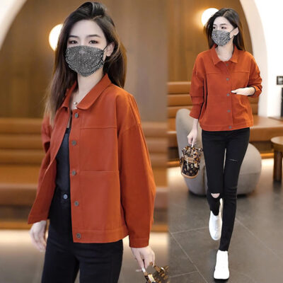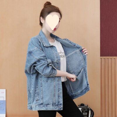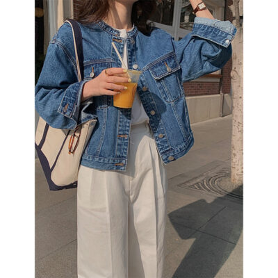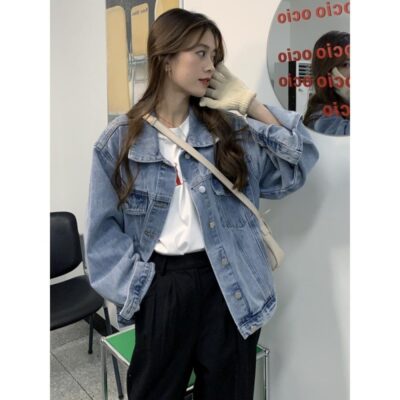 Mùa xuân năm 2023 phong cách Hàn Quốc giản dị BF quạt xe áo khoác dáng rộng phù hợp với áo khoác denim ngắn thời trang nữ