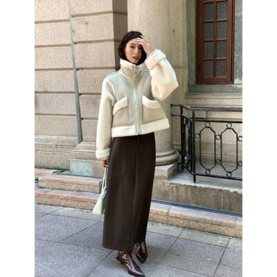 Nội Hòa Nội Hạ Ve Áo Cừu Nhung Áo Khoác Nữ Thu Đông Mới Ấm Khâu Áo Khoác Lông Nữ 6331