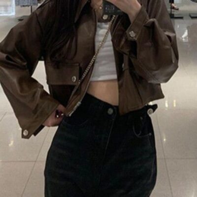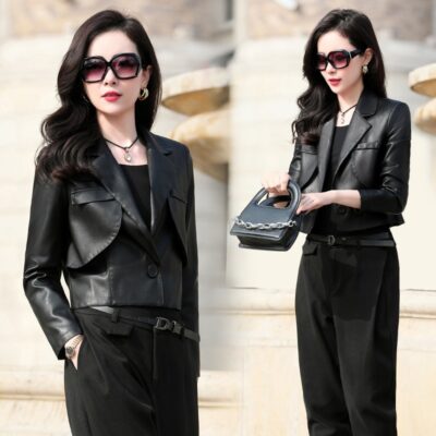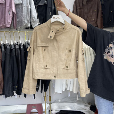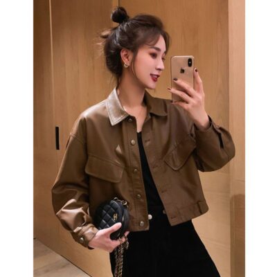 Da PU Quần Áo Thời Trang Nữ Áo Khoác Ngắn Nữ 2023 Mới Quần Áo Thu Đông Thường Tất Cả Trận Đấu Áo Khoác Top X326