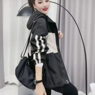 Áo khoác nữ mùa xuân và mùa thu 2023 Châu Âu cao cấp áo khoác gió chống nắng có mũ kích thước lớn áo khoác bóng chày áo khoác hàng đầu