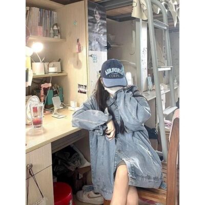 Áo khoác denim nữ hệ muối mùa xuân và mùa thu phiên bản Hàn Quốc rộng rãi phù hợp với quần áo ngắn dài tay áo khoác gió lười BF tóc thế hệ hàng đầu