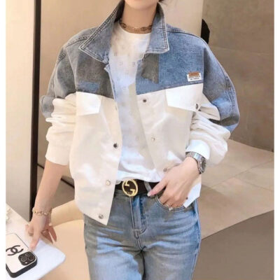 Màu sắc thời trang tương phản denim khâu áo khoác nữ mùa xuân 2023 retro phù hợp với áo khoác xu hướng hàng đầu