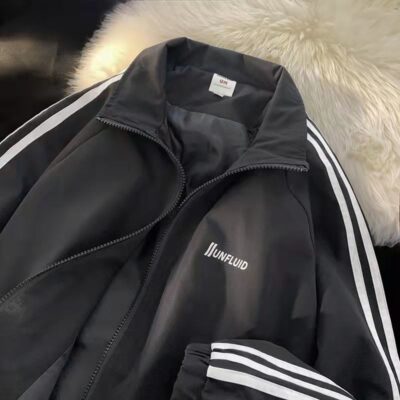 [Spot hair] courreges thể thao mới và giải trí dây kéo sọc nhấn màu áo khoác áo len đồng phục bóng chày