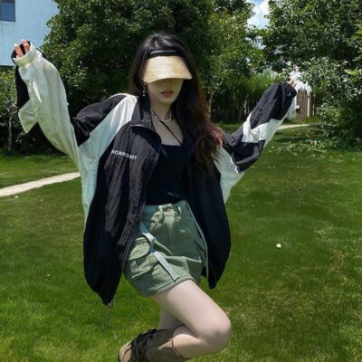 Quần áo chống nắng thường ngày mùa hè của phụ nữ áo khoác mỏng một lớp áo khoác mùa hè Quần áo chống nắng thể thao kiểu Mỹ áo khoác