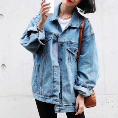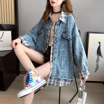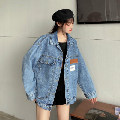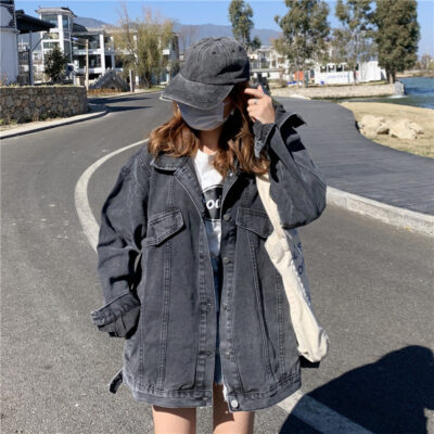 Áo Khoác Denim Chiều Dài Trung Bình Mùa Xuân Và Mùa Thu Nữ Hợp Thời Trang Phong Cách Hàn Quốc Dáng Rộng Đa Năng Lười Gió Áo Khoác Cao Cấp