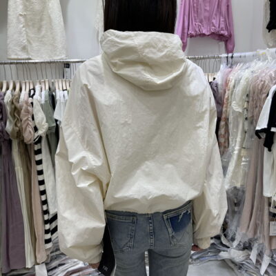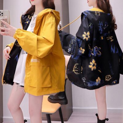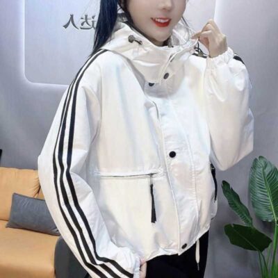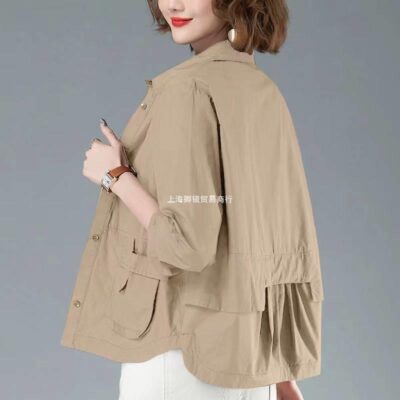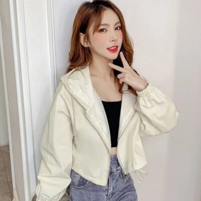 Áo khoác ngắn dây rút có mũ rộng rãi áo khoác ngắn dài tay áo khoác mùa xuân và mùa hè mới áo gió giản dị cho nữ quần áo chống nắng
