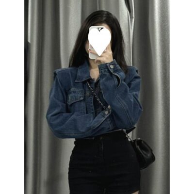 Áo khoác denim nữ đoạn ngắn mùa xuân mới đệm vai áo khoác denim nữ hot girl phiên bản Hàn Quốc áo khoác dạ hàng đầu triều