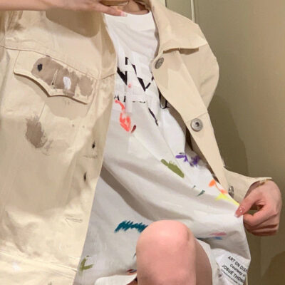 Phiên bản hàn quốc của áo khoác cặp đôi đường phố trong áo khoác denim màu trắng phù hợp với tất cả các phong cách thời trang mùa xuân và mùa thu 2023 nữ trên mạng màu đỏ