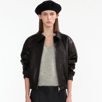 Mùa Thu Đông 2023 Châu Âu Mới Hàng Áo Khoác Da Nữ Ngắn Rời Đen Da Cừu Cardigan Áo Khoác Da
