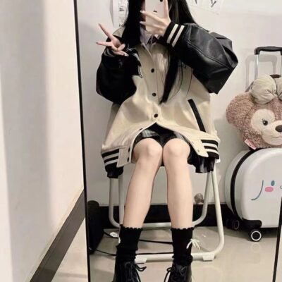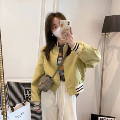 Áo khoác ngắn thời trang nữ dài tay mùa xuân 2023 mới giản dị cho tất cả các trận đấu rời áo khoác bóng chày áo khoác hợp thời trang