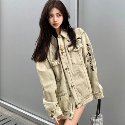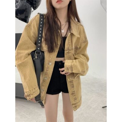 Áo khoác denim phong cách retro của Mỹ nữ mùa thu 2023 thiết kế rộng rãi áo khoác đường phố dài tay hàng đầu xu hướng nữ sinh viên