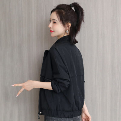Áo khoác mùa xuân dáng ngắn 2023 kiểu mới nữ cổ đứng phiên bản Hàn Quốc mỏng màu đen áo khoác xuân thu nhỏ thời trang