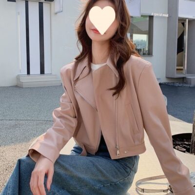 Áo khoác da ngắn áo khoác nữ màu hồng mùa xuân 2023 phiên bản Hàn Quốc nhỏ áo khoác đi mô tô hợp thời trang trên đường phố