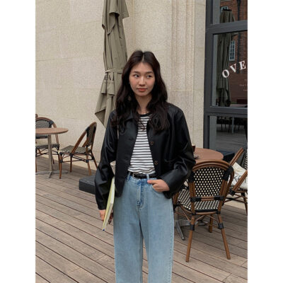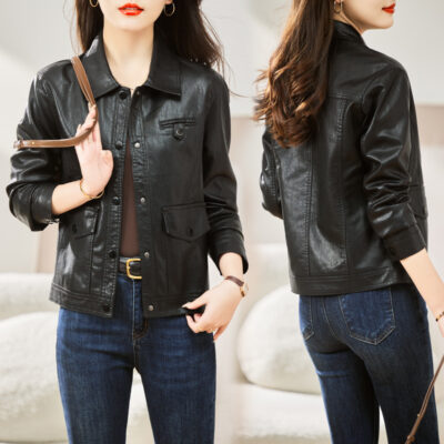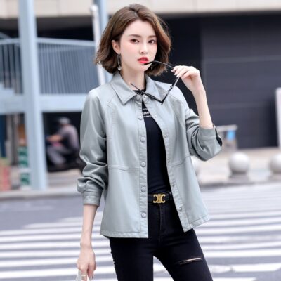 Áo khoác da thường nữ mùa xuân 2023 phong cách Hàn Quốc có ve áo thời trang tất cả các trận đấu xe máy quần áo đã giặt sạch áo khoác da cừu áo khoác
