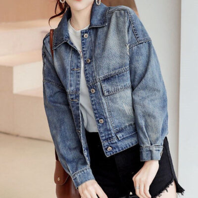 Mùa xuân mới phiên bản Hàn Quốc áo khoác denim dáng rộng phù hợp với tất cả các nữ sinh áo khoác mỏng dài tay áo khoác ngắn hàng đầu