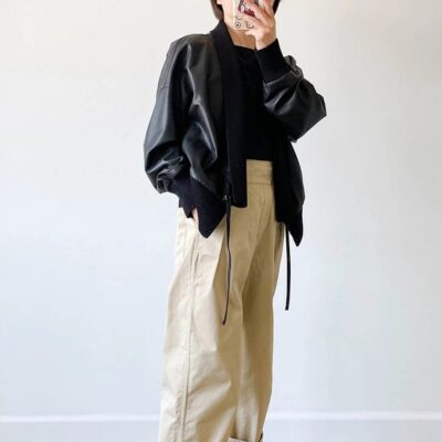 áo khoác da nhỏ mùa xuân 2023 mới của phụ nữ áo khoác cắt màu đen nhỏ