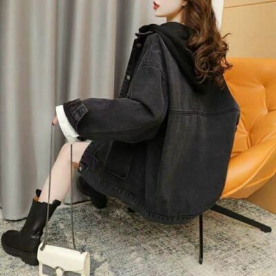 Phiên bản Hàn Quốc áo khoác denim có mũ trùm đầu nữ mùa xuân hè 2023 áo khoác denim cỡ lớn phong cách retro xu hướng quần áo