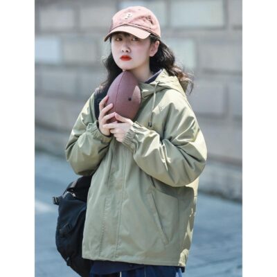 Áo khoác có mũ trùm đầu màu hồng tím áo khoác nữ chống gió mùa thu khí chất giản dị mới hợp xu hướng áo khoác ins