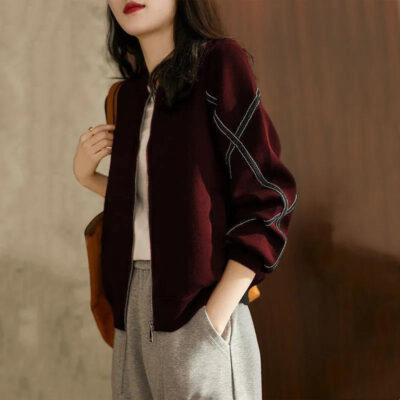 Đường may hoa mai phổ biến năm nay áo khoác cổ đứng thể thao hàng đầu 2023 áo khoác thường mới đồng phục bóng chày xu hướng nữ